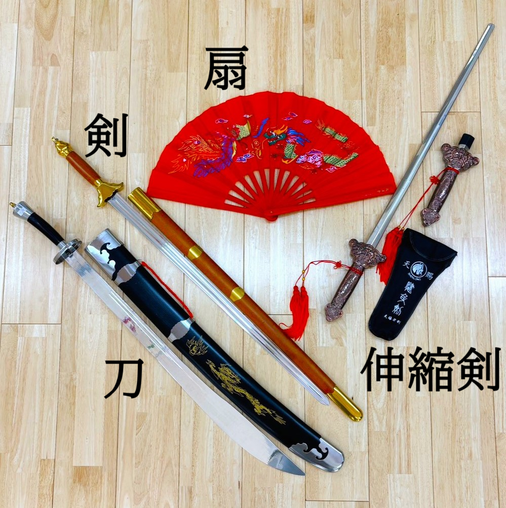 持ち運びに便利な伸縮タイプの剣です。専用ケースが付属しており、携帯性と実用性を兼ね備えています。