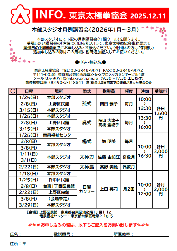 ①本部スタジオ月例講習会